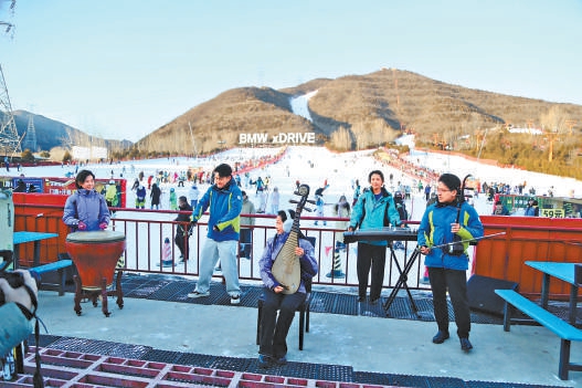 北京民族乐团“空降”军都山滑雪场。